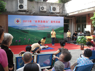 為迎接今年 “世界急救日”的到來,提高公眾自救互救意識,傳播救護(hù)知識和技能,9月9日,省紅十字會聯(lián)合廣東藥學(xué)院附屬醫(yī)院和省護(hù)理學(xué)會在共和社區(qū)門診開展了家庭應(yīng)急救護(hù)技能培訓(xùn)和現(xiàn)場急救活動,紅十字志愿者手把手教社區(qū)居民學(xué)習(xí)急救技術(shù),接受家庭護(hù)理咨詢,還向廣大居民免費發(fā)放急救宣傳手冊、光碟和家庭急救包;顒由钍苌鐓^(qū)居民歡迎,300多人踴躍參加。