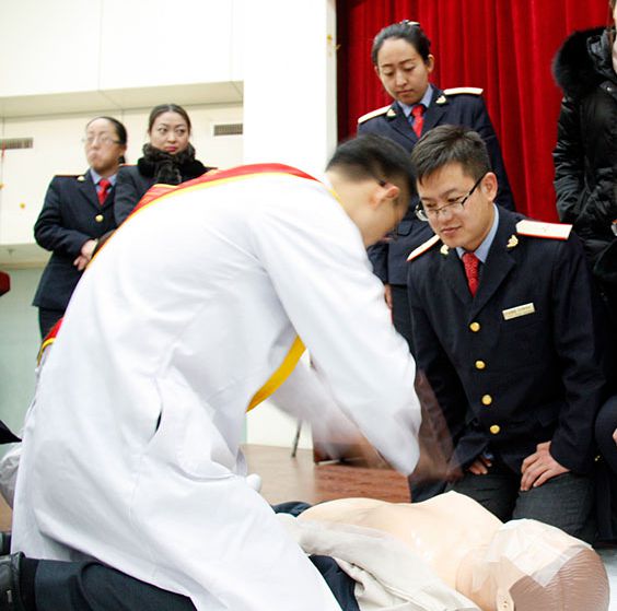 春運火車大多擁擠,路途上碰到緊急事件?瓦\一線列車員應該掌握心臟復蘇技巧。如果客運段患有先天心臟病、冠心病、急性心梗的乘客突然出現心臟驟停,在4分鐘之內正確施救,搶救成功率能達到60%到70%,而救護車快也要10分鐘后才能到達。作為公認的“救命要術”,心肺復蘇術已發明55年。而在我國,目擊者對心臟驟;颊邔嵤┬姆螐吞K的比例僅有15%—30%;國人至今仍有八成以上不會心肺復蘇,而真正明白“黃金搶救4分鐘”概念的更是寥寥無幾。