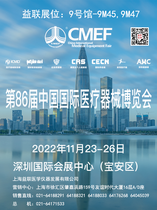 您好!2022第86屆中國國際醫療器械博覽會(CMEF),將于2022年11月23日至11月26日在深圳國際會展中心(寶安區·新館)舉行,上海益聯醫學儀器發展有限公司屆時將組團參展。歡迎您的光臨洽談!
