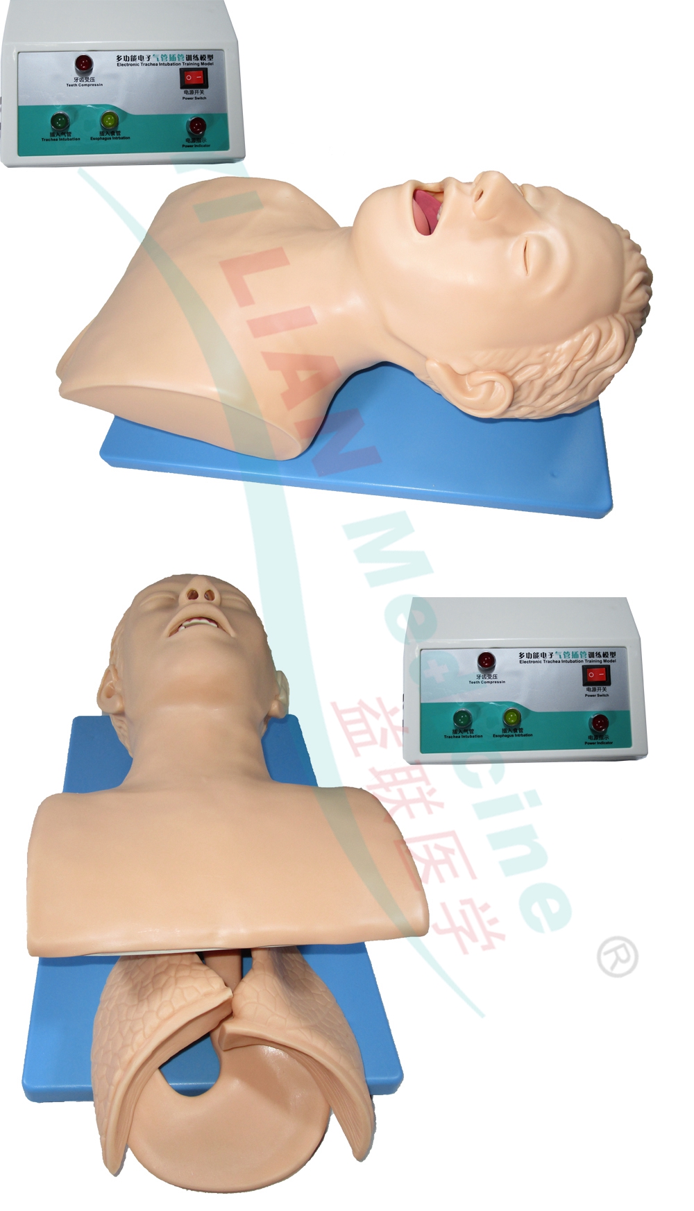 • 在進行口腔、鼻腔氣管插管的訓練操作時,正確操作插入氣道,有電子顯示及奏樂功能;供氣使雙肺膨脹,并注入空氣到管子氣囊固定管子。