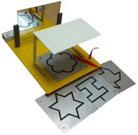 | 鏡畫儀是分析動作技巧形成過程的心理學常用儀器。實驗時,被試將下額放在遮板上方,注視平面鏡內的圖形。用描繪筆學習畫下畫板上圖形。儀器記錄畫下整個圖形所需的時間與失敗次數。