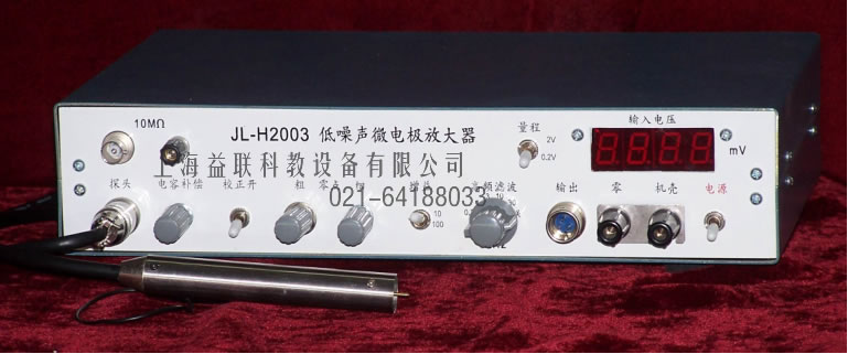 | Low-noise Microelectrode Amplifier Model JL-H2003 本儀器噪聲低、柵流小、溫度漂移低和探頭體積小,既適于用尖端較粗的玻璃微電極和金屬微電極作細胞外微弱生物電脈沖的記錄,也適于用尖端很細的玻璃微電極作細胞內記錄。它還有3位半數字電壓表,能對生物膜電位等慢變化電位作精確的測量。 JL-H2003也可作為低噪聲微電流放大器,在工業和科研的其它方面作測量微弱電信號之用。 JL-H2003可單獨使用,也可和JL-H2000微電泳儀系統其它模塊上下疊放,一起使用。柵 流:<1´10-12 A (TA=25°C時) 輸入電阻:>1´1012Ω 噪 聲:<500mVP-P (RS=10MΩ并補償,高頻濾波30kHz 時) 頻率響應:DC-20kHz (-3dB, 當信號源電阻RS=10MΩ并補償時) 高頻濾波:300Hz, 1kHz, 3kHz, 10kHz, 30kHz (-3dB) 放大倍數:´10,´100 精度優于 ±1% 輸入范圍:不小于 ±500mV(放大倍數為 ´10時) 數字顯示:3位半,精度優于 ±1% ±1(末位), 指示輸入電壓 校正方波:1kHz 電極測量:校正方波幅度和電極電阻成正比 放大倍數´10時約 1MΩ/10mV, ´100時約 1MΩ/100mV 電 源:交流220V 體 積:機箱 300mm寬 ´ 65mm高 ´ 190mm深,探頭 16mm ´ 115mm長 重 量:3kg |