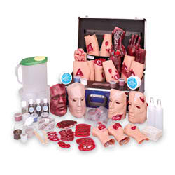 該95件套重創(chuàng)模型元件可進(jìn)行創(chuàng)傷處理練習(xí)。這些用乙烯樹脂制成的傷口,可以粘貼或用繃帶綁在模型人或真實(shí)傷者的身體上。每個流血的傷口包括一個用于模擬血液的儲存袋和動力泵。用來練習(xí)快速識別傷口和傷口的伴隨癥狀、訓(xùn)練現(xiàn)場急救、傷口分類。重15千克。