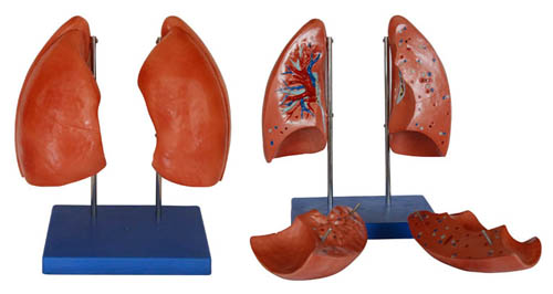 本模型自然大小,分成4件。兩瓣肺葉可取下,示其內部結構。有底座。