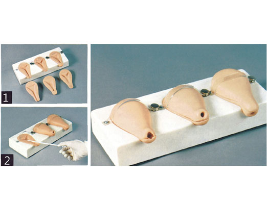 本模型是為臨床實習過程中學習人工流產刮宮技術而設計的,它包括三個模塊:水平位子宮、孕6~7周前傾,孕6~7周后傾子宮。