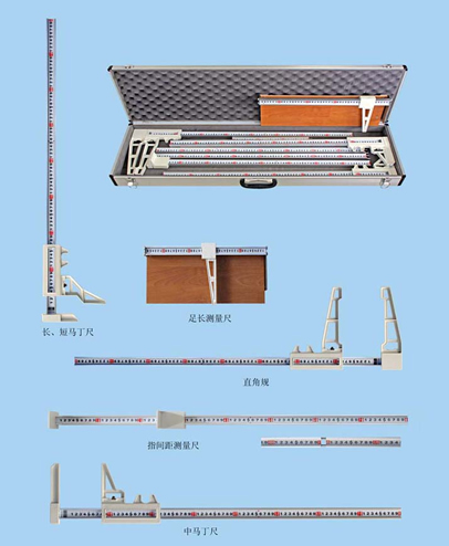 本套測量尺可根據人體不同形態而通用。用于測量人體身高、坐高,臂伸、腿長、小腿長、肩寬、上肢等。