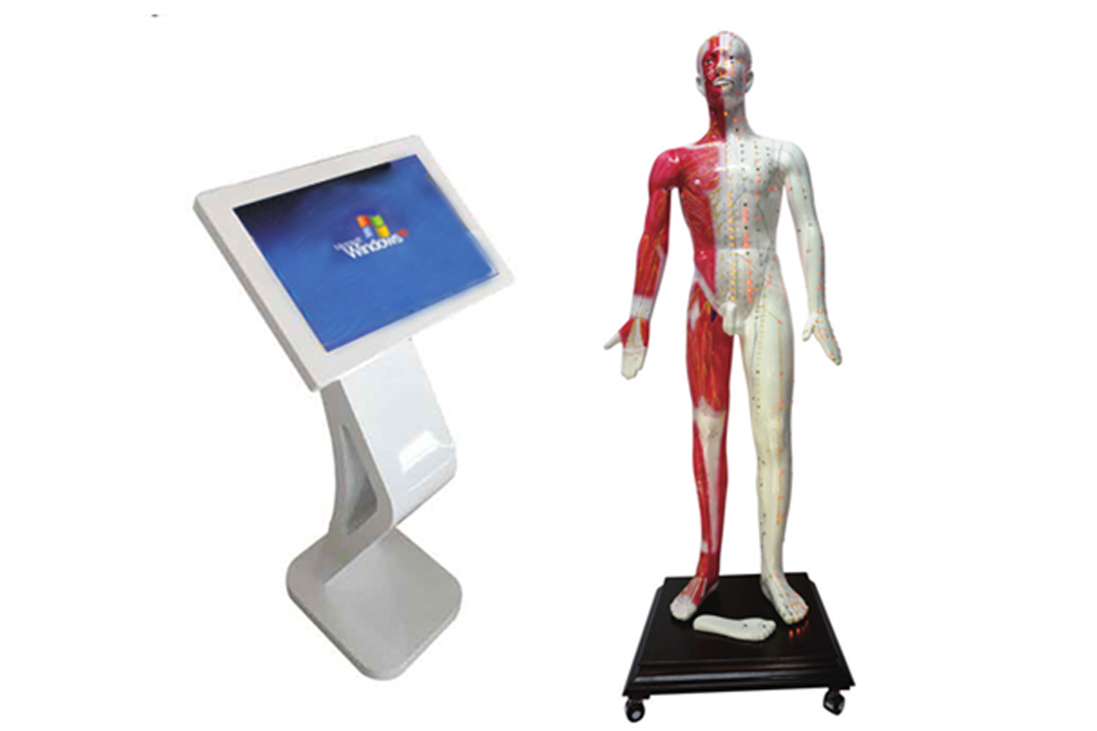多媒體人體數字交互系統(見圖示,人體模型可以調換), 融合當今的“整合”理念,將當今先進的觸摸控制技術、多媒體技術、腧穴理論完美的結合于一體;集課堂授課、學生實驗、 考核鑒定于一身;實用軟件的操作,展示硬件的功能,外觀簡潔,環境優美,功能先進,操作自助,更體現了該實訓基地領先的教學理念與實用的設備配置。 學生終端一體機-操作功能 *自助學習、自助練習、模擬考試、正式考試; 教師主機服務器-管理功能; *自動出題、自動評分、自動統計、自動歸檔; 無線傳輸,傳輸距離可達30M,教學更自由: .可加配IPAD版本,操作更隨心所欲;