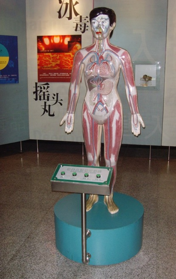 模型演示鼻吸、口服、靜脈注射、肌肉注射四種吸毒的血液循環。
