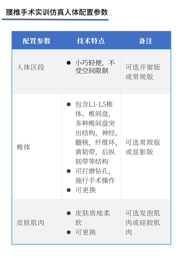 1.2成年人體格外觀,包含1:1真實人體解剖結構,如皮膚、肌肉、L1-L5腰椎、椎間盤、神經,髓核,纖維環,黃韌帶,后縱韌帶等結構。