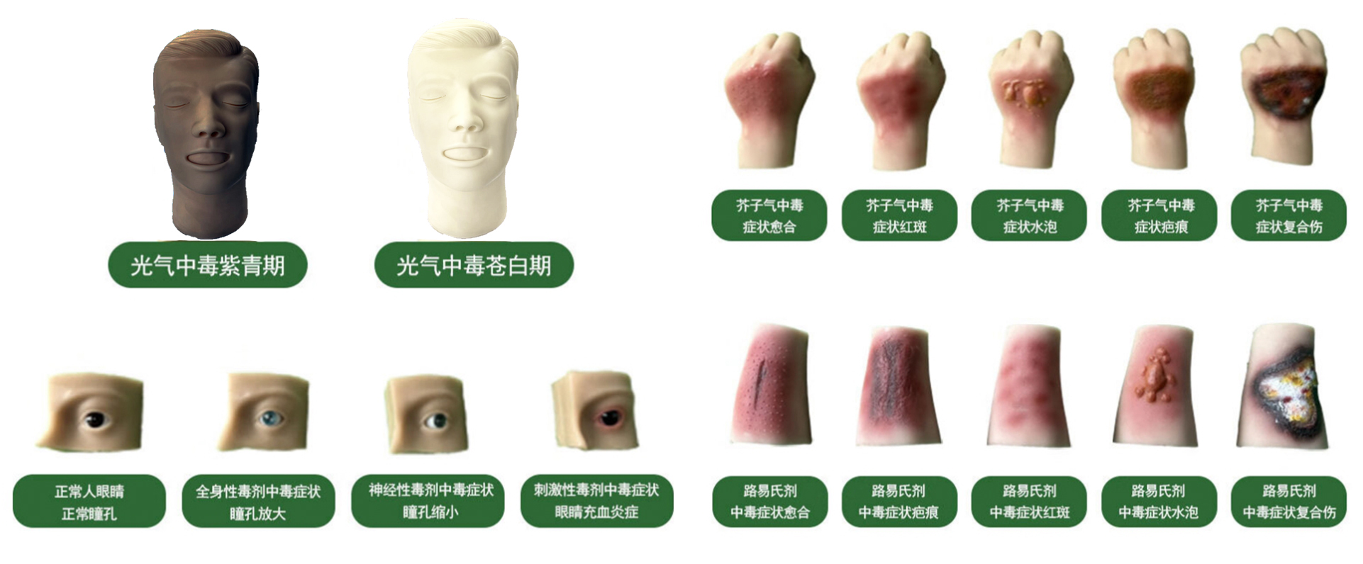 包括中毒后瞳孔變化(眼部模型)、光氣中毒(人臉模型)、路易士氣中毒癥狀(手臂模型)和芥子氣中毒癥狀(手部模型)。