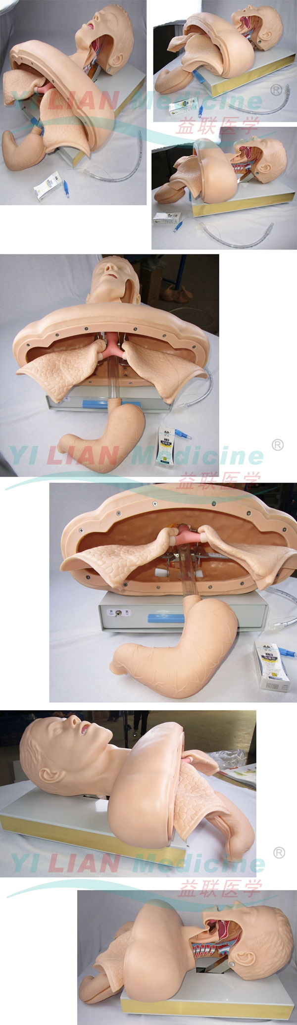 主要功能:標準的人體解剖結構與真實操作直觀演示相結合的功能進行口腔、鼻腔氣管插管的訓練操作時,正確操作插入氣道,有側面直觀功能:供氣使雙肺膨脹,并注入空氣到管子氣囊固定管子進行口腔、鼻腔氣管插管的訓練操作時,錯誤操作插入食道,有側面直觀功能及報警功能。供氣使胃膨脹。進行口腔,鼻腔氣管插管訓練操作時,錯誤操作使喉鏡造成牙齒受壓,有電子報警功能。